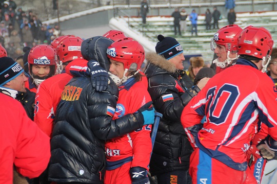 Поддержать национальную сборную России прилетел вице-президент Федерации хоккея с мячом России Николай Валуев. Почетную миссию в роли вручающих медалей выполнили губернатор Иркутсой области Сергей Ерощенко, мэр Иркутска Виктор Кондрашов и президент областной Федерации хоккея с мячом Владимир Матиенко.