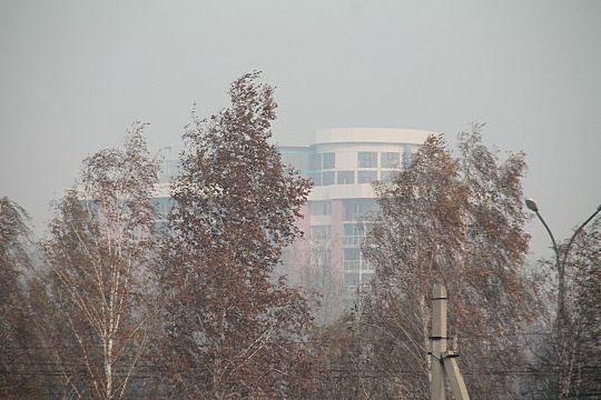 Густой дым накрыл столицу Прибайкалья в осенний период времени и ухудшил видимость на дорогах.
