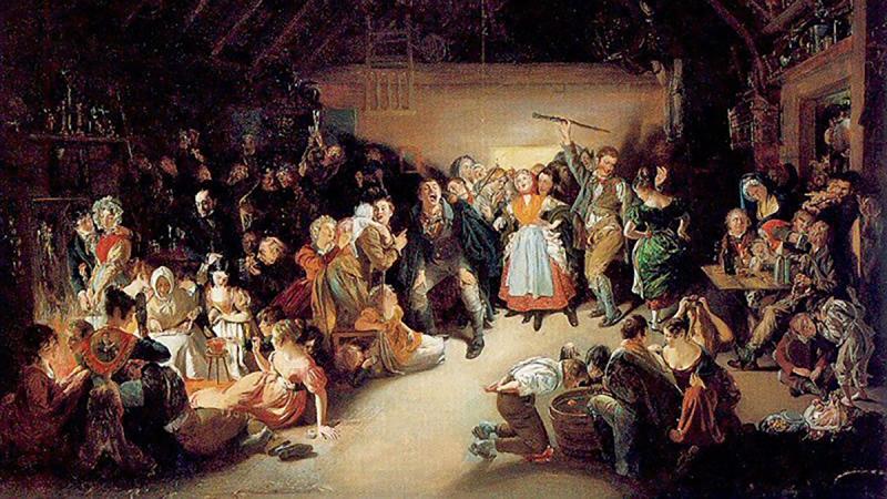 Эта теория подкрепляется древнеирландскими мифами и историческими данными, свидетельствующими о том, что в Самайн — один из двух главных праздников года — происходили масштабные королевские пиры, собиравшие толпы народа. Есть даже упоминания о том, что в ночь Самайна умирал каждый, кто не присутствовал на пиру при королевском дворе (и, вероятно, нарушил этим свои гейсы, клятвы-обязательства). Конечно, такие «сходки» касались представителей местной знати, а простой народ устраивал праздник в своей общине, но при этом даже в бедных деревушках старались закатить «пир горой». Праздник длился не один день: пиршество начиналось за три дня до Самайна, а заканчивалось ещё через три дня (всего, значит, гуляли не менее недели).
