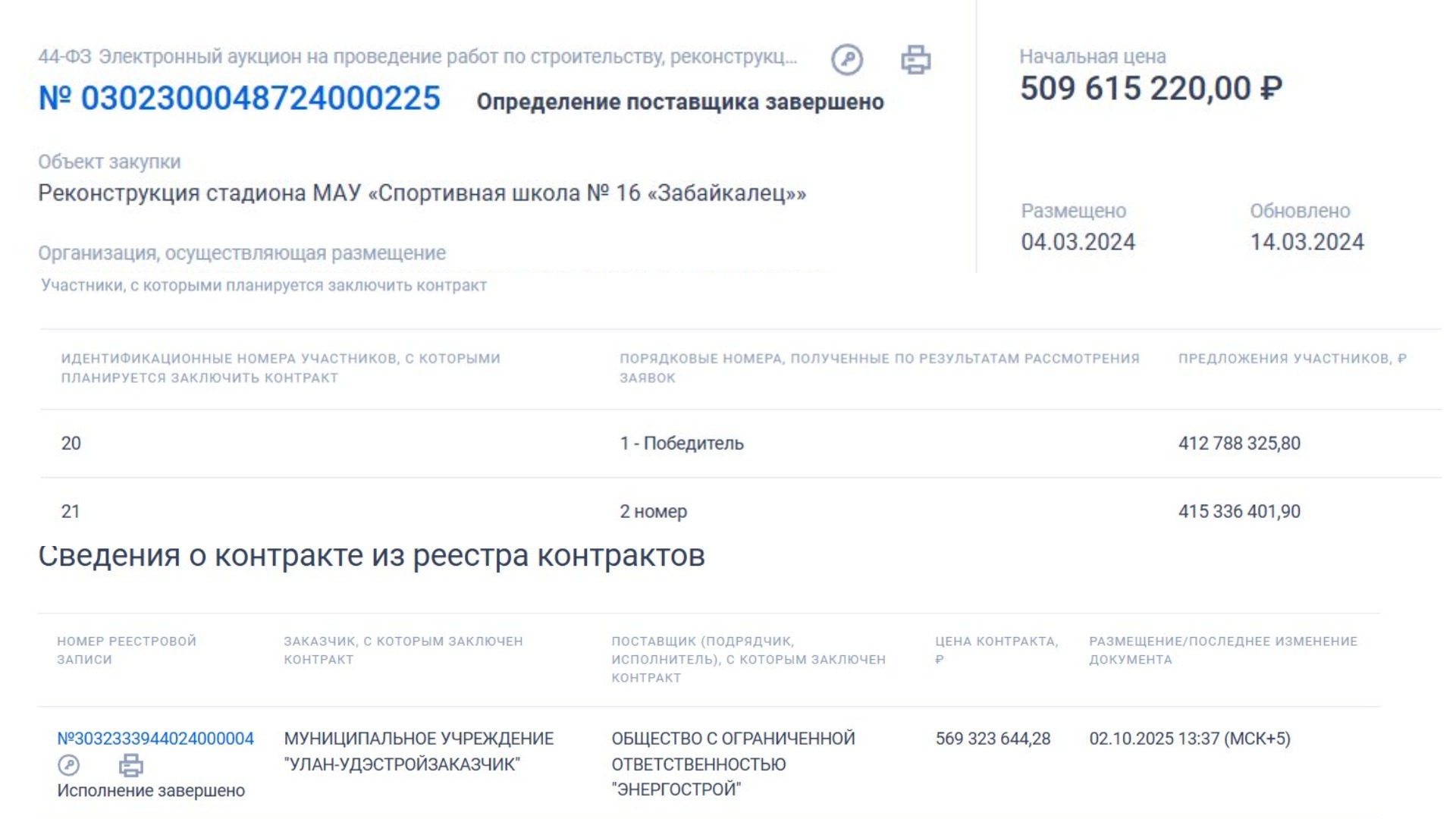 По данным источников, знакомых с ходом проверки, внимание силовиков привлекли обстоятельства самих торгов. Компания «Энергострой» (ОГРН 1190327008960) выиграла тендер, предложив цену почти на 90 миллионов рублей ниже конкурентов. Подрядчик выиграл торги и отправил бумаги в государственную экспертизу. После согласований чиновники увеличили сумму контракта на 412 миллионов рублей. Итоговая цена с учётом тендерного коэффициента перевалила за 569 миллионов. При этом объём работ в первоначальном техническом задании не изменился.