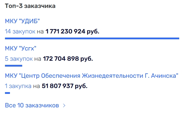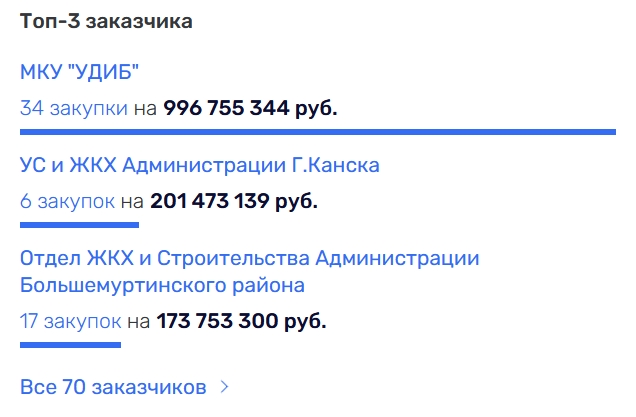 ООО «Енисейгрупп» (ОГРН 1192468003441), руководитель и учредитель Абраам Ерицян. УДИБ также является лидером среди заказчиков.