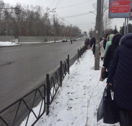 Красноярск. Студенты идут в гору три остановки, потому что Путин приехал в СФУ, и все автобусы и машины вообще никуда не пускают.