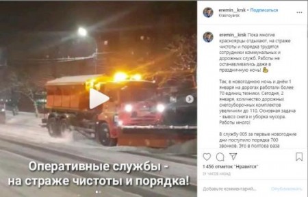 Сергей Ерёмин 2 января похвалил дорожные службы города за хорошую работу в новогодние праздники, однако у красноярцев оказалось другое мнение. Жители города раскритиковали мэра за вывоз мусора и состояние дорог. Красноярцы оставили более 200 комментариев под публикацией мэра в Инстаграме.
