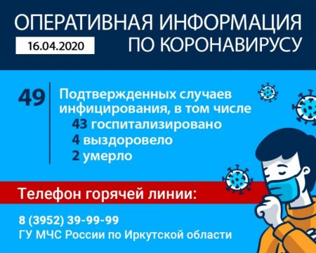По данным на утро 30 апреля, в Иркутской области зафиксировано 129 случаев заражения коронавирусом. За сутки удалось обнаружить 15 новых больных. 39 человек выздоровели, двое – за последние сутки. В больницах остаются 85 пациентов, четыре человека умерли.