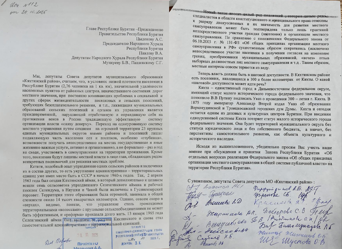 Депутаты Кяхтинского района Бурятии массово выступили против муниципальной реформы, аргументируя это большой удаленностью населенных пунктов, плохими дорогами и риском полной оторванности «глубинки» от управления. В то же время правительство республики отстаивает свои приоритеты.