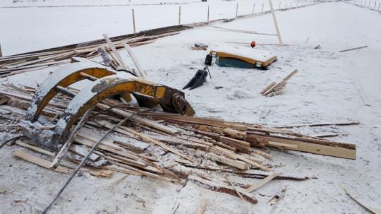 Колесный фронтальный погрузчик, возводивший ограждение будущей ледовой переправы вблизи населенного пункта Кривошапкино Киренского района, провалился под лед реки Лены около двух часов дня 30 ноября.