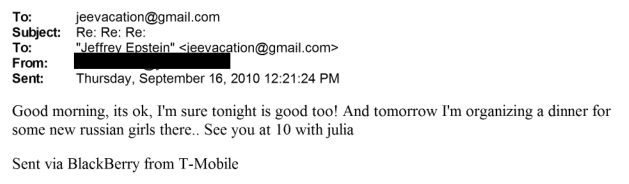 На это письмо Эпштейн ответил Ирине, что позаботится о транспорте и даст денег на ужины.