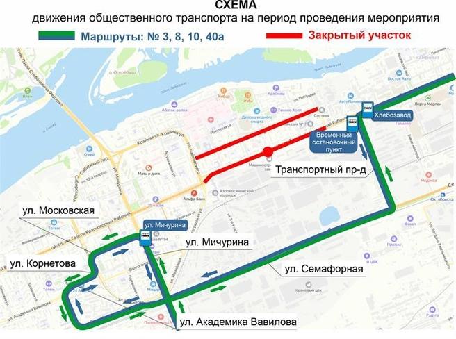В Красноярске 29 апреля временно изменится схема движения общественного транспорта на правом берегу.