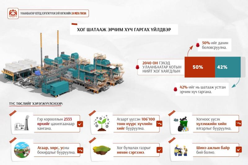 Будущее предприятие будет утилизировать до 1500 тонн мусора в сутки, производя взамен 35 мегаватт энергии. По подсчётам экспертов, этих объёмов хватит, чтобы обеспечить электроэнергией более двух тысяч домохозяйств в юрточных районах. Строить завод будут на полигоне Моринги в районе Хан-Уул, его стоимость оценивается в 205 миллионов долларов. Запуск проекта намечен на 2026–2028 годы.