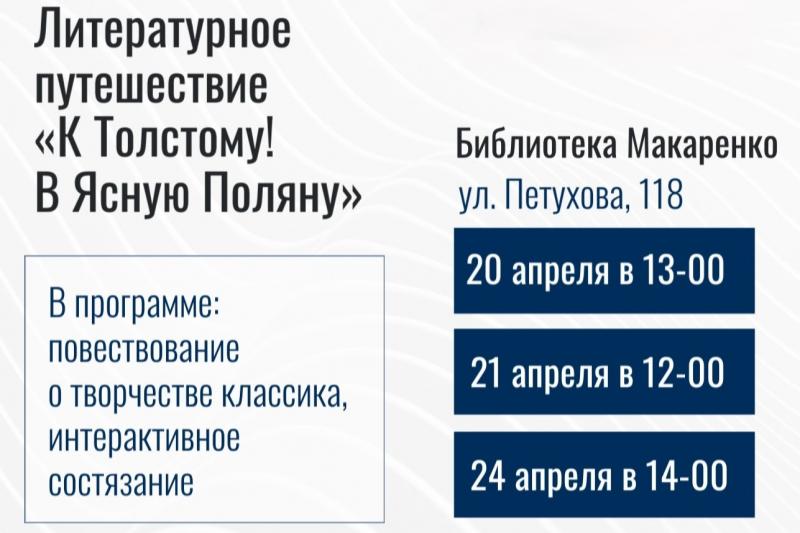 24 апреля жители и гости Новосибирска смогут посетить литературное путешествие «К Толстому! В Ясную Поляну» в Библиотеке имени Макаренко.