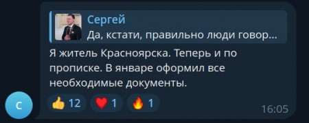 Мэр Сергей Верещагин оформил красноярскую прописку. Об этом глава города заявил вечером 3 февраля в чате своего телеграм-канала. В комментариях подписчики напомнили градоначальнику о его обещании сменить столичную регистрацию на местную.