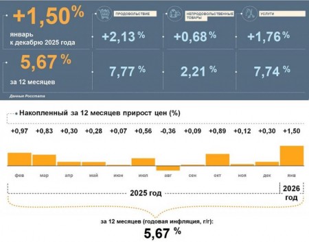 Уровень годовой инфляции в Томской области в первый месяц 2026-го вырос и составил 5,67% – ниже общероссийского уровня (6%). По данным Росстата, цены в регионе в январе выросли на 1,5% по отношению к декабрю прошлого года. Продукты подорожали больше, чем непродовольственные товары и услуги.