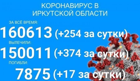 В Иркутской области за сутки с 11 по 12 сентября выявлено 1 209 новых случаев коронавируса. Всего за время эпидемии в регионе заболели 326 735 человек. С начала пандемии излечились 310 600 человек. В минувшие сутки выздоровели 805 пациентов.