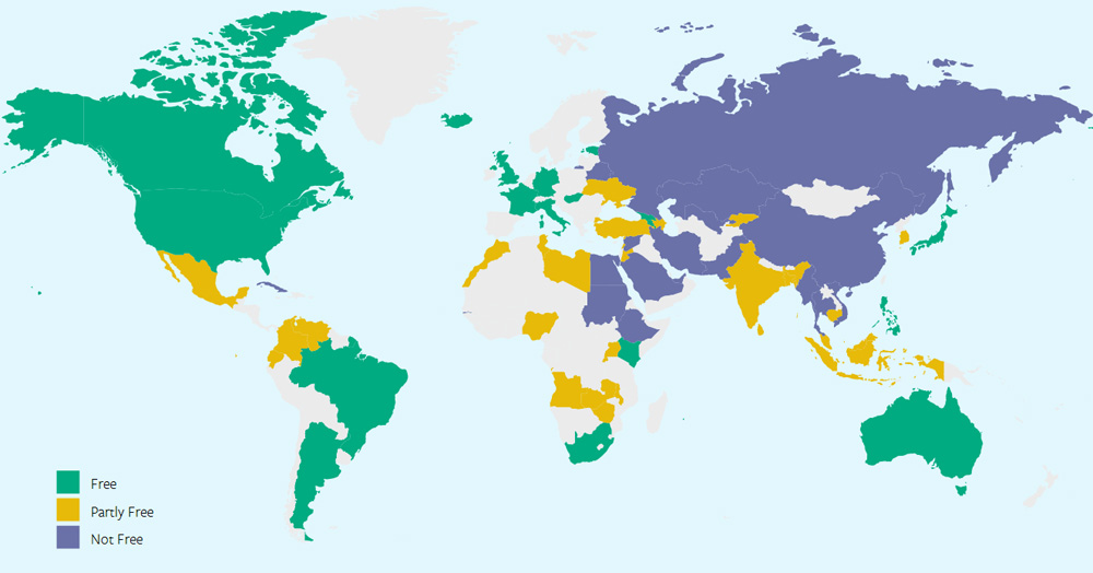 Среди стран, в которых уровень свободы интернета еще ниже оказались Китай, Куба, Эфиопия, Белоруссия, Иран, Мьянма, Пакистан, Саудовская Аравия, Сирия и другие. Самый низкий показатель цензуры в сети у Исландии, Эстонии, Канады, Германии, Австралии и США.