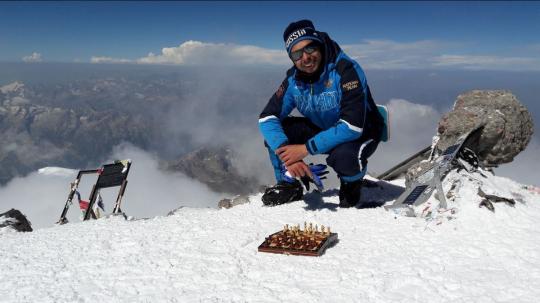 Житель Улан-Удэ Юрий Бочкарев и его друг Александр Рязанцев, чемпион России и тренер женской сборной, сыграли шахматную партию на Эльбрусе.