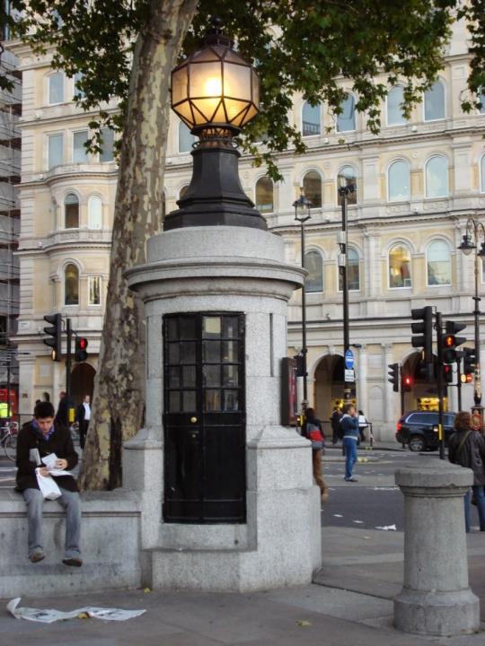 Чтобы не привлекать к себе внимание общественности, на Трафальгарской площади, ближе к улице Стрэнд, установили широкий фонарный столб, а в его основание - будку Lilliput для полицейских. Это крошечное сооружение с 1926 года было самым маленьким полицейским участком. Сегодня будку используют для хранения инвентаря для уборки улиц.