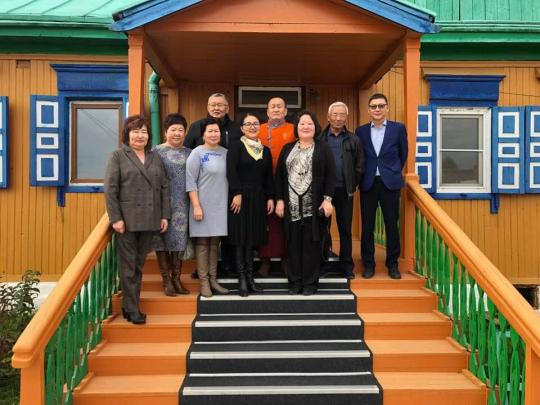 Хамбо лама, председатель администрации главы Бурятии Баир Цыренов и активисты, участвующие в выпуске `Буряад Унэн` на диалектах бурятского языка.