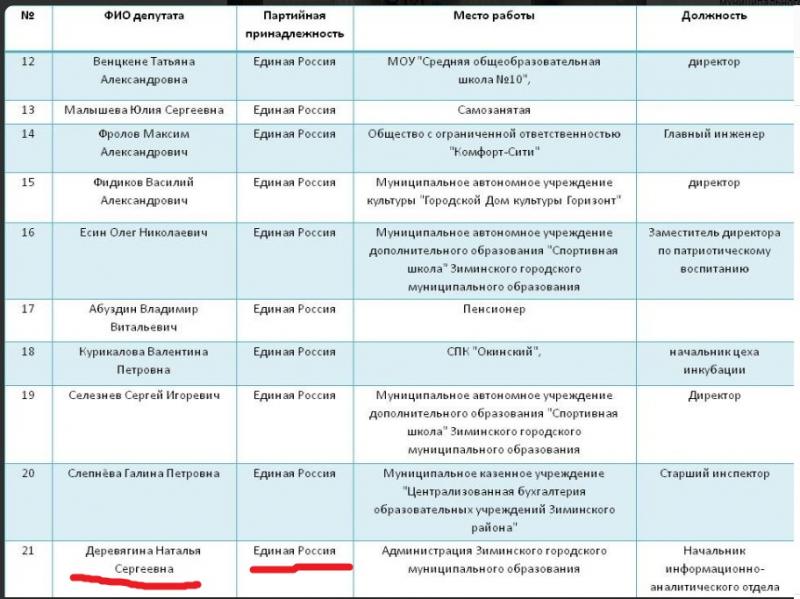 Политического опыта у нее нету, внешность белокурая, характер ангельский, поэтому под Наталью Сергеевну, которая формально шла как самовыдвиженка, жестко зачистили поляну, на которой изначально было четверо кандидатов, включая добровольно-принудительно снявшегося в августе официально выдвинутого единоросса. Оставили для декорации только технического. А только прошли выборы и – трах-тибидох-тибидох! – Деревягина, как Золушка по мановению волшебной палочки доброй феи (председателя Зиминской городской территориальной избирательной комиссии Ольги Трубниковой) превратилась в единоросса. Так на официальных ресурсах думы теперь и пишут.