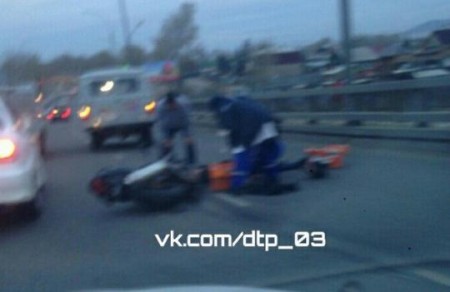 Авария с участием мотоциклиста произошла в 20:15 1 мая на Левом берегу в Улан-Удэ. 30-летний мотоциклист выехал на встречку на спуске с моста «Бегущая Лань» и врезался в автомобиль Toyota Harrier.