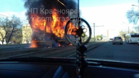 Около семи часов утра 10 мая в Красноярске между остановками «Предмостная площадь» и «Юбилейная» прямо на ходу вспыхнул трамвай. В этот момент внутри находилось 10 пассажиров. Пламя стремительно охватило вагон, в итоге трамвай практически полностью выгорел.