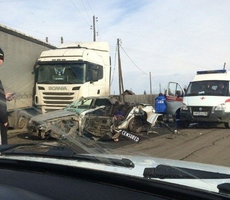 В Улан-Удэ "КамАЗ" смял машину такси