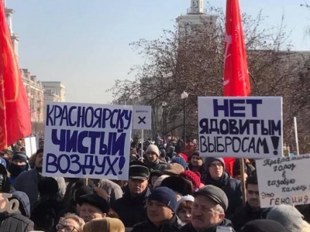 Экоактивистам Красноярска не дали провести митинг «За чистое небо» 30 марта во время Красноярского экономического форума. Тогда митинг перенесли из-за того, что на Красной площади собирались провести «иное публичное мероприятие с иными целями». Но его не было.