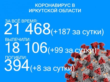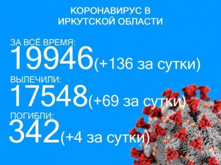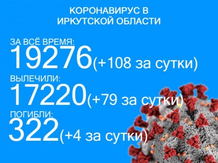 По данным на 1 октября, в Иркутской области зафиксировали 19 276 случаев заражения коронавирусом, суточный прирост — 108 человек. За всё время выздоровело 17 220 пациентов, в том числе 79 за последние сутки. Всего госпитализировано 1125 человек, с 30 сентября в больницы попали ещё 24 заражённых.