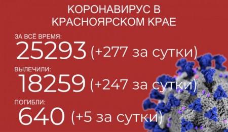 По данным на 31 октября, в Красноярском крае 26 445 случаев заражения коронавирусом, суточный прирост — 293. Темп прироста — 1,1%. 19 352 человека уже выздоровели, с 30 октября из больниц выписали ещё 270 пациентов. 6985 жителей края остаются под наблюдением на дому, суточный прирост — 627.