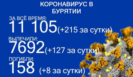 В Бурятии, по данным на 31 октября, зарегистрировано 11566 случаев заболевания коронавирусом. Суточный прирост составил 235 новых случаев, сообщает республиканское Управление Роспотребнадзора. 65% заболевших живут в Улан-Удэ – 7555 человек.