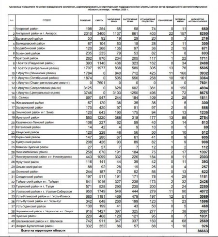 По состоянию на утро 1 декабря в Иркутской области зарегистрировано 32640 лабораторно подтверждённых случаев коронавирусной инфекции. За последние сутки заболевание выявлено у 279 человек. 3906 человек проходят лечение в стационарах, ещё 4901 лечатся амбулаторно.
