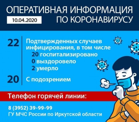 По данным на утро 30 апреля, в Иркутской области зафиксировано 129 случаев заражения коронавирусом. За сутки удалось обнаружить 15 новых больных. 39 человек выздоровели, двое – за последние сутки. В больницах остаются 85 пациентов, четыре человека умерли.