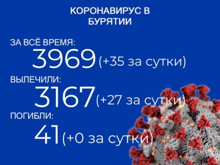 В республике за сутки подтвердили 34 случая заражения коронавирусом. При этом Минздрав перестал включать в статистику бессимптомных больных, их число неизвестно. Всего с начала пандемии в регионе зарегистрирован 2991 случай заражения COVID-19. Из них в Улан-Удэ — 1679 случаев.