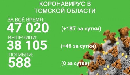 По состоянию на 31 октября в Томской области зарегистрировано 47 945 случаев коронавируса. В минувшие сутки заболевание зарегистрировано у 244 жителей региона. С начала эпидемии излечились 38 312 жителей региона. В минувшие сутки выздоровели 47 пациентов.