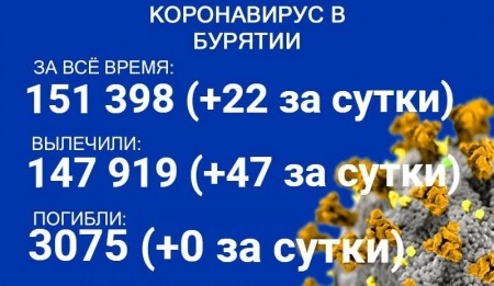 По данным на 11 октября, еще 22 человека в Бурятии заболели коронавирусом. Также за сутки 47 пациентов выздоровели. Летальных исходов зарегистрировано не было. Об этом сообщает пресс-служба регионального Роспотребнадзора.