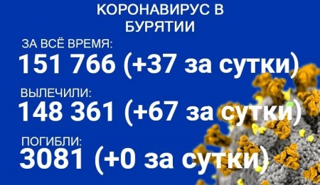По данным на 20 октября, еще 37 человек в Бурятии заболели коронавирусом. Также за сутки 67 пациентов выздоровели. Летальных исходов зарегистрировано не было. Об этом сообщает пресс-служба регионального Роспотребнадзора.