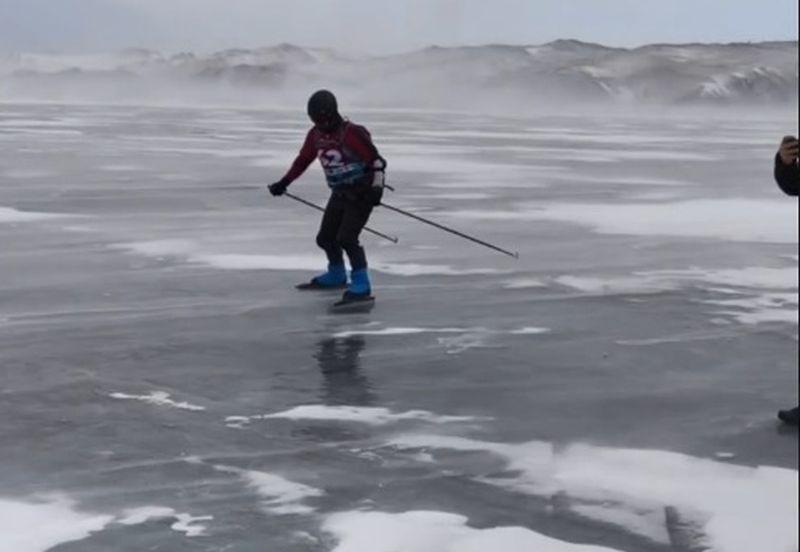 Гонка «Ледовый шторм» проводится на Байкале с 2013 года. На первом этапе участники должны были пройти от Сахюрты до Бугульдейки, но старт отменили, участников отправили в Бугульдейку по земле. Ветер дует с такой силой, что сносит даже «хивусы», которые должны были идти в поддержку участников.