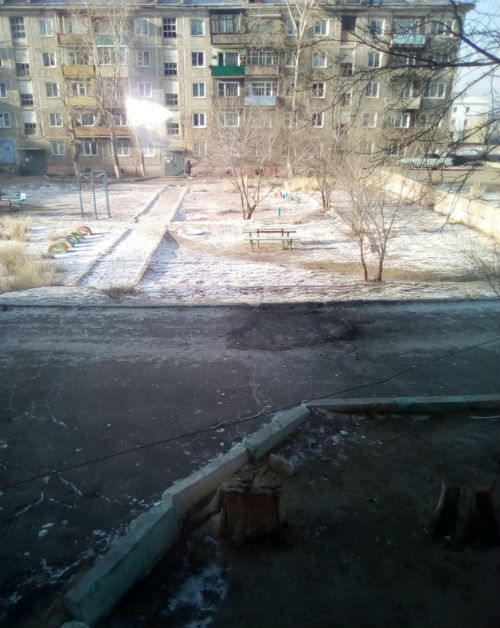 Ремонт дороги своими силами выполнили мужчина и его 72-летняя соседка. Во дворе их называют дядей Сашей и бабой Верой. Они заделали дыру в асфальте кирпичами и гравием. По информации телеканала «360», пенсионерка всю жизнь проработала маляром-штукатуром на Холбольджинском разрезе.