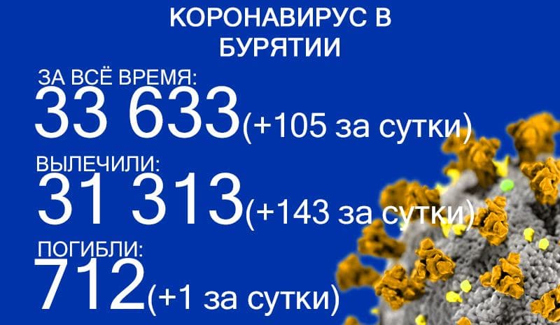 По данным на 27 февраля, еще 105 человек в Бурятии заболели COVID-19. Также за сутки 143 пациента выздоровели, один скончался. Об этом сообщает региональный оперштаб по коронавирусу.