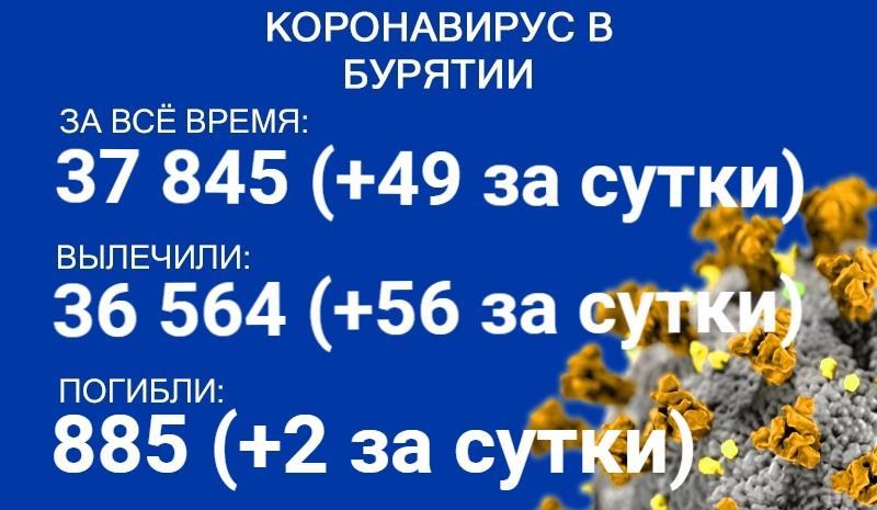 По данным на 21 мая, еще 49 человек в Бурятии заболели COVID-19. Также за сутки 56 пациентов выздоровели, двое скончались. Об этом сообщает пресс-служба регионального Роспотребнадзора.