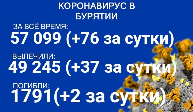 По данным на 8 сентября, еще 76 человек в Бурятии заболели COVID-19. Также за сутки 37 пациентов выздоровели, двое скончались. Об этом сообщает пресс-служба регионального Роспотребнадзора.