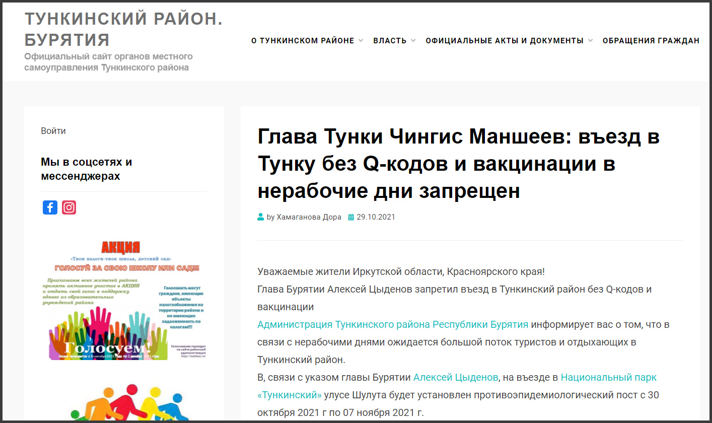 Отметим, что ранее глава Бурятии Алексей Цыденов заявлял, что никаких ограничений в передвижении по территории республики вводиться не будет. Никаких приказов, на которые ссылается администрация Тунки, на сайте правительства РБ нет.