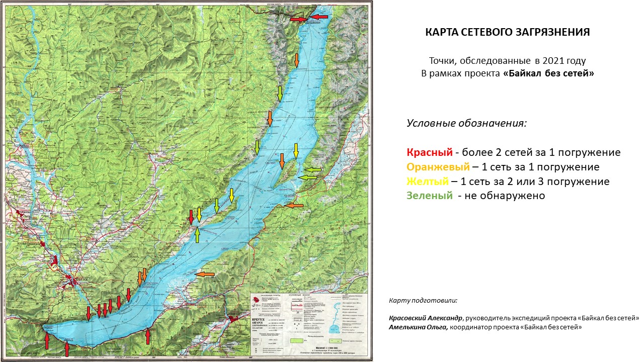 «Подводя итог реализации проекта «Байкал без сетей» в 2021 году, мы можем смело сказать, что нам удалось сформировать сообщество, которое занимается решением проблемы «сетевого» загрязнения водоемов. Все вовлеченные участники проекта и представители сообщества признают наличие проблемы, связанной с затонувшими рыболовными сетями и браконьерством. Однако, несмотря на единогласное признание существования проблемы, экспертами выдвигаются разные пути ее решения», – сообщается на официальном сайте фонда «Озеро Байкал».