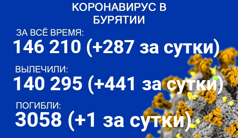 По данным на 7 сентября, еще 287 человек в Бурятии заболели коронавирусом. Также за сутки 441 пациент выздоровел, один скончался. Об этом сообщает пресс-служба регионального Роспотребнадзора.