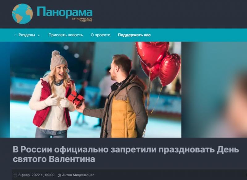 Сатирическое издание «Панорама» в очередной раз предсказала реальные события, правда, в отдельно взятом городе. В феврале 2022 года издание опубликовало шутливую статью о запрете празднования Дня святого Валентина. Спустя год эта новость уже не выглядит смешной сатирой, а, видимо, стала призывом к действию для Ирины Ковалевой, председателя комитета культуры Улан-Удэ.