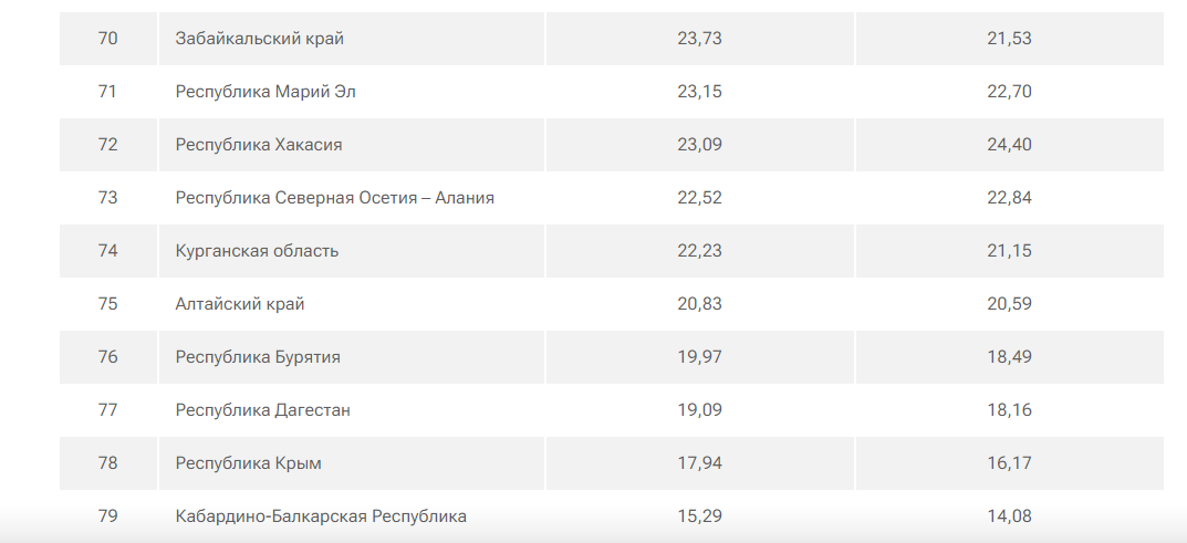 Тыкать носом в проблемы чиновников из правительства Бурятии стало уже традицией аналитиков РИА. Напомним, согласно их летнему исследованию, 19% жителей республики живут за чертой бедности, им серьезно может грозить смерть от голода, а деньги на услуги и непродовольственные товары у них и вовсе отсутствуют. Эти люди на свои доходы не могут купить даже одного минимального набора продуктов. В Иркутской области на границе с нищетой живут 14,9% людей, в Забайкальском крае — 18%.