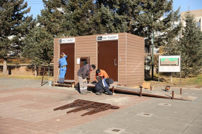 Платному туалету, установленному недавно на главной площади Улан-Удэ, принесли в жертву ель😢
