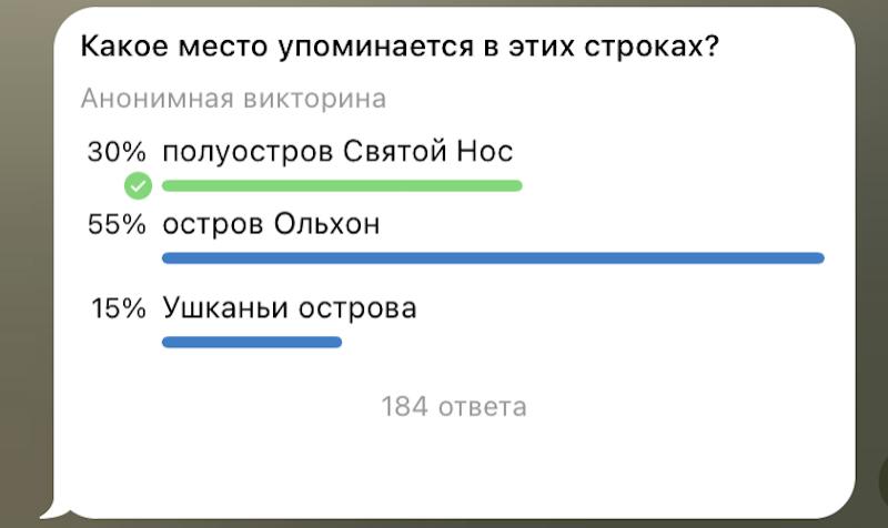 Телеграм-канал «Бурятия. Бабр. Дальше некуда» спросил у своих читателей, узнали ли они место, которое упоминается в этих строках. И лишь 30 % опрошенных ответили верно – это полуостров Святой Нос. Да, главное его отличие от острова Ольхона, за который проголосовало большинство участников опроса, – горное плато на вершине.