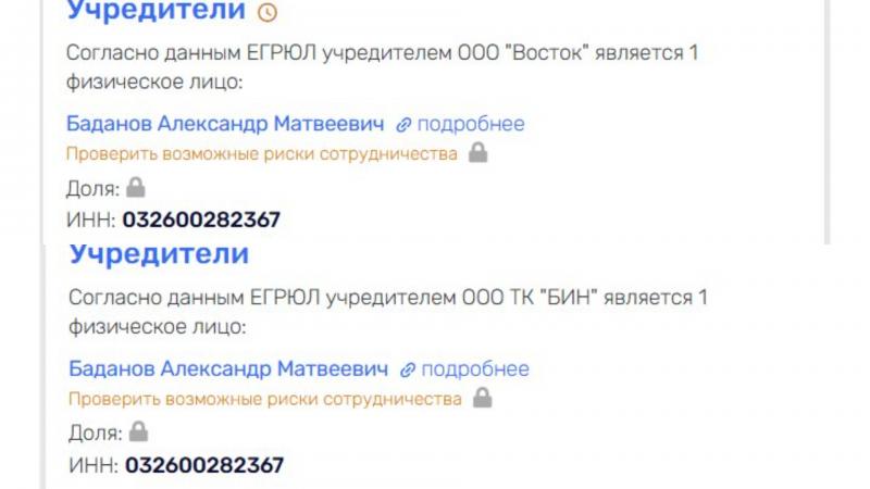 Сеть «Николаевский» — часть холдинга «БИН» (ОГРН 1020300963946), который прочно ассоциируется с семьёй Бадановых. Братья Матвей и Юрий Бадановы — бывшие депутаты Народного Хурала и Улан-Удэнского горсовета. Холдинг управляет более чем 50 магазинами с миллиардными оборотами. Связь между ритейлером и производителем отравленной продукции оказалась до банального прямой. Единственным учредителем ООО «Восток» (ОГРН 1030302953108), согласно данным ЕГРЮЛ, является Александр Матвеевич Баданов. Он же выступает соучредителем ключевых компаний группы «БИН».
