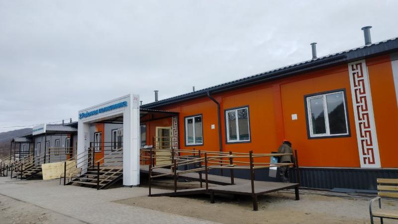 В селе Орлик Окинского района Бурятии продолжается строительство новой модульной поликлиники, которая сможет принимать до 70 пациентов в день. Отставаний от графика нет, сдать объект должны в этом декабре. Сейчас подрядчик занят внутренней отделкой. Об этом в своем Телеграм-канале сообщил глава республики Алексей Цыденов.