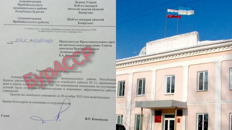 24 октября глава Прибайкальского района Бурятии Николай Коновалов уведомил председателя райсовета Евгения Родионова, что он должен освободить кабинет № 11 в здании администрации до 30 октября. «Улучшение условий труда сотрудников администрации и повышение эффективности работы учреждения», — указанная в письме причина, по которой спикера выселили с рабочего места.